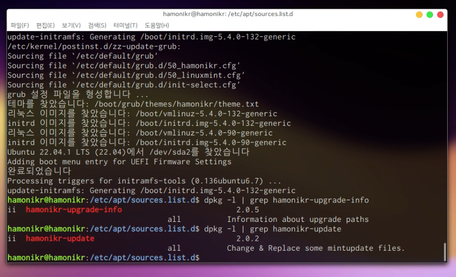 dpkg -l | grep hamonikr-upgrade-info