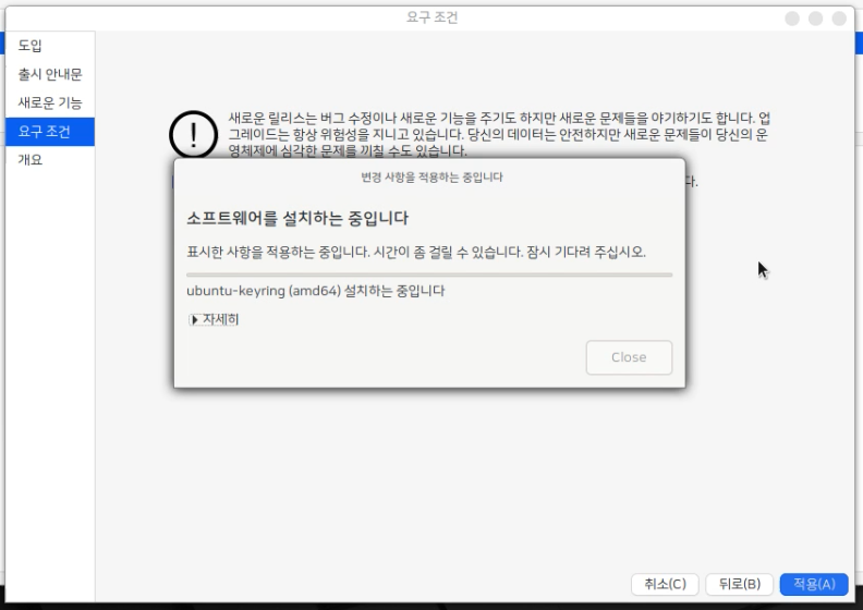 업그레이드가 진행되며 상당한 시간이 소요됩니다.