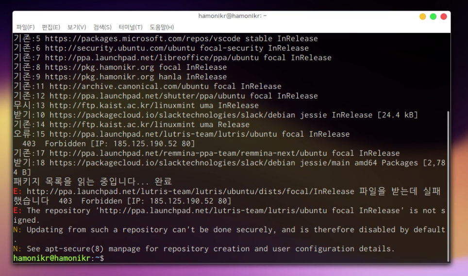 hamonikr-upgrade-info는 2.0.5 버전 이상 hamonikr-update는 2.0.2 버전 이상이어야 합니다.
