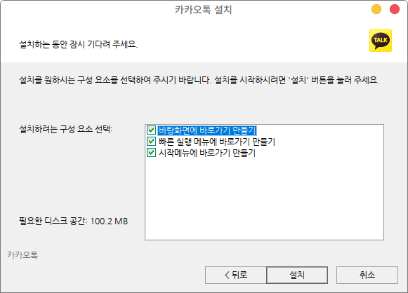 설치 버튼을 누르면 설치가 바로 진행되는 다른 프로그램들과 다르게 카카오톡은 아래와 같이 설치가 가능합니다.