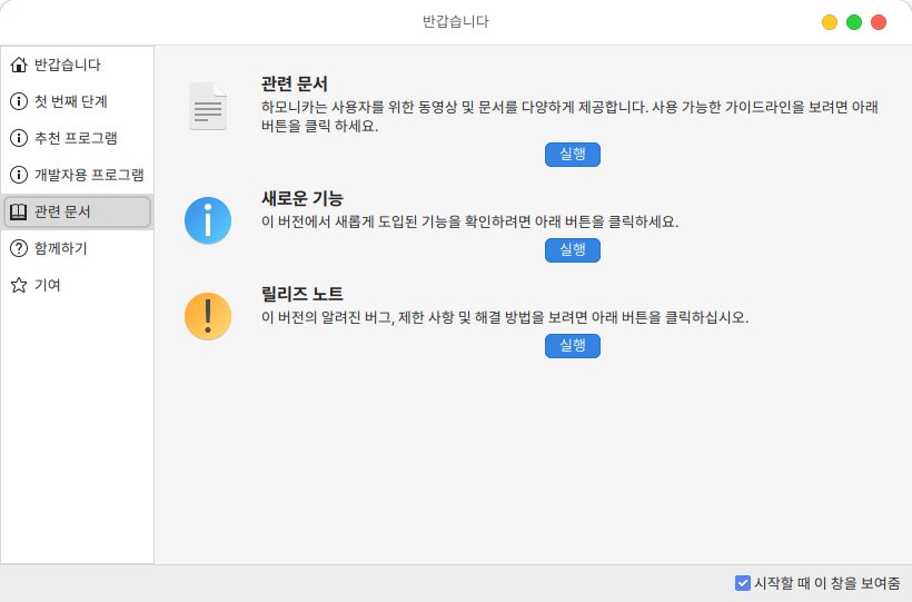 관련 문서에서는 하모니카 6.0 매뉴얼과 새로운 기능, 릴리즈 노트에 관련된 문서 확인이 가능합니다.