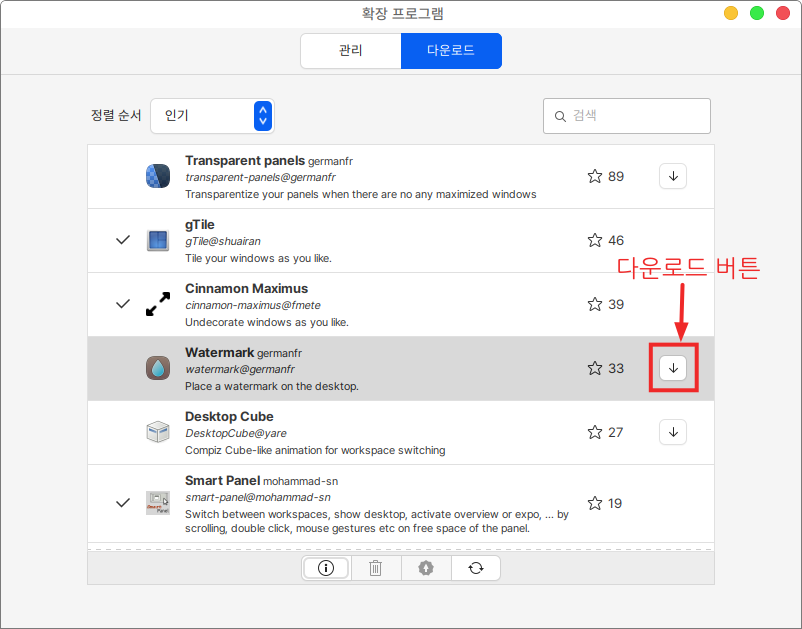 1\. 다운로드 메뉴에서 원하는 확장 프로그램을 다운로드 받아 줍니다.&#x20;
