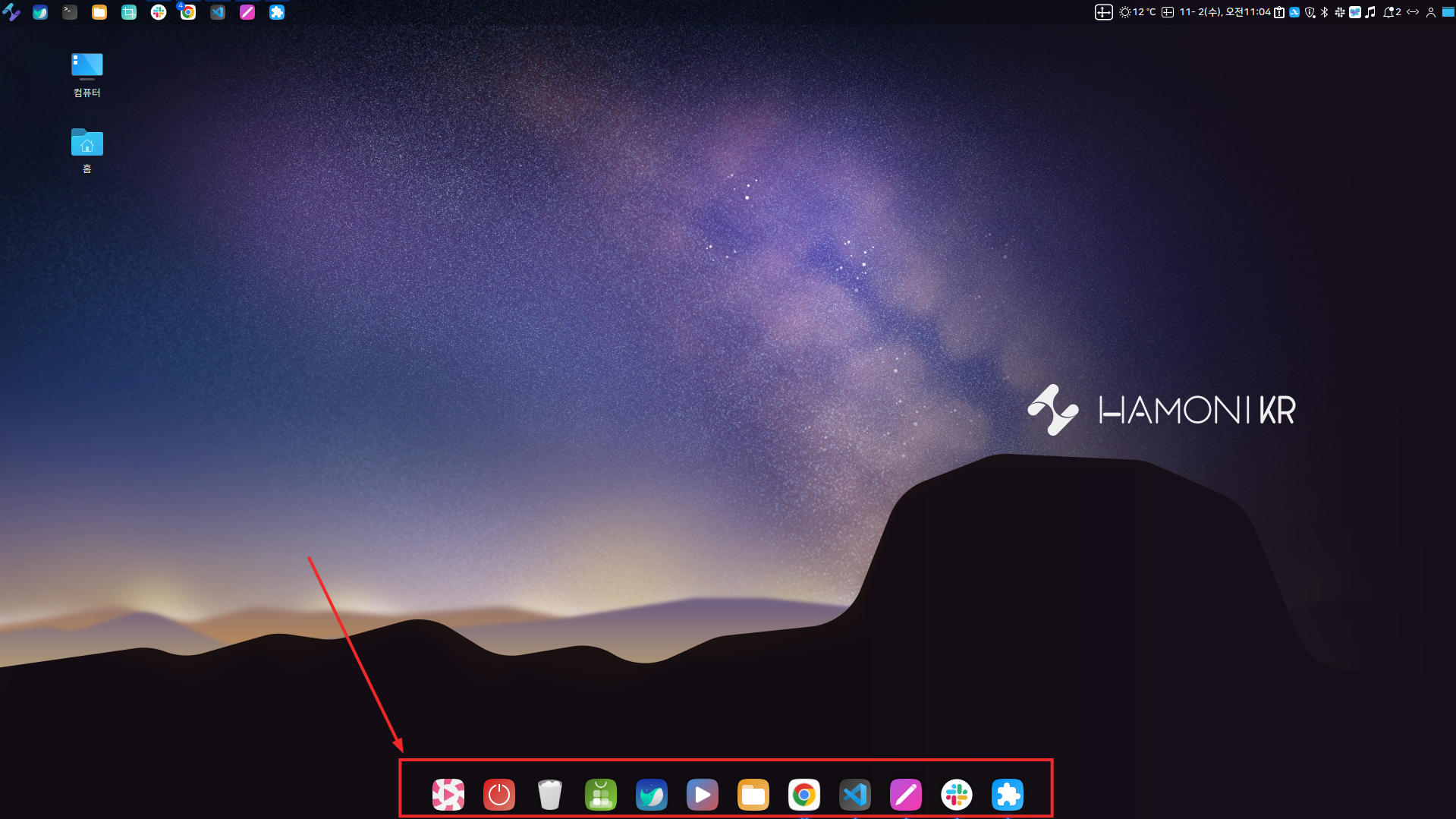 Plank는 화면 하단의 프로그램 바로가기 매뉴바 입니다. plank dock을 통해 plank 설정이 가능합니다.