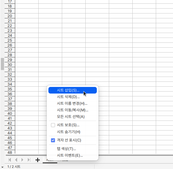 <figure><img src="https://4090665885-files.gitbook.io/~/files/v0/b/gitbook-x-prod.appspot.com/o/spaces%2FBKrxTTaACEPEgr0BkulL%2Fuploads%2FyO1IqpaSx8BZ7k0k5aTj%2F%EC%8A%A4%ED%81%AC%EB%A6%B0%EC%83%B7%2C%202022-10-27%2015-59-14.png?alt=media&#x26;token=60f7de7f-c767-43dc-956e-26f15e7e3605" alt=""><figcaption><p>새  워크 시트를 기존 워크시트의 끝에 빠르게 삽입하려면 화면 맨 아래의 워크시트 삽입 탭을 클릭합니다.</p></figcaption></figure>