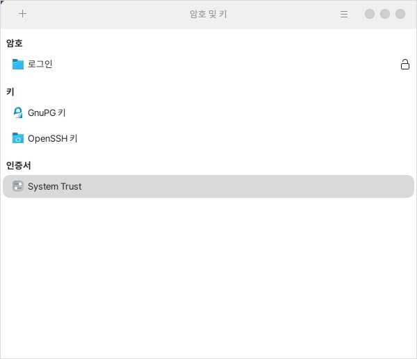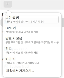 암호 및 키 프로그램은 사용자가 등록한 키들을 관리할 수 있습니다.