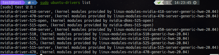 먼저 설치 가능한 nvidia 목록을 확인합니다.