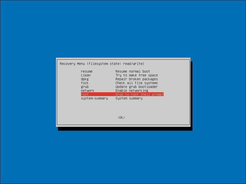 네트워크가 연결되었다면 root를 선택하여 터미널 환경으로 진입합니다.