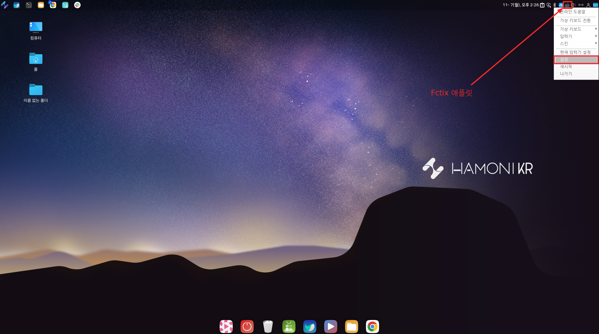 3\. 시스템 트레이의 Fctix 애플릿을 오른쪽 클릭해서 "설정"을 선택합니다.