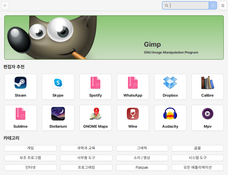 검색창에서 찾고자하는 프로그램을 검색하여 설치할 수 있습니다.&#x20;