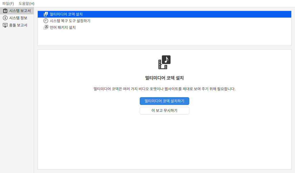 * 멀티미디어 코덱 설치 유무 확인&#x20;