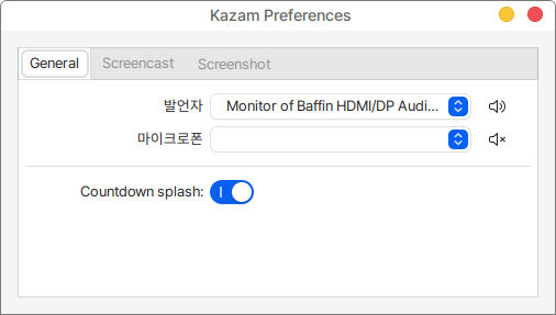 * &#x20;countdown splash (켬/끔) : 캡처 시작전 카운트다운(대기시간)을 화면에 보여주거나(켬)