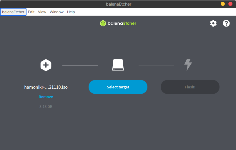 select target버튼을 클릭해서 이미지를 설치할 SD카드 또는 USB 선택 후 select 버튼을 눌러줍니다.