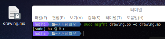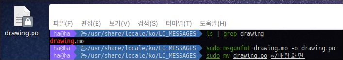 프로그램이 이미 설치되어 있기 때문에 해당 파일을 /usr/share/locale/ko/LC_MESSAGES/drawing.mo 파일로 존재합니다.