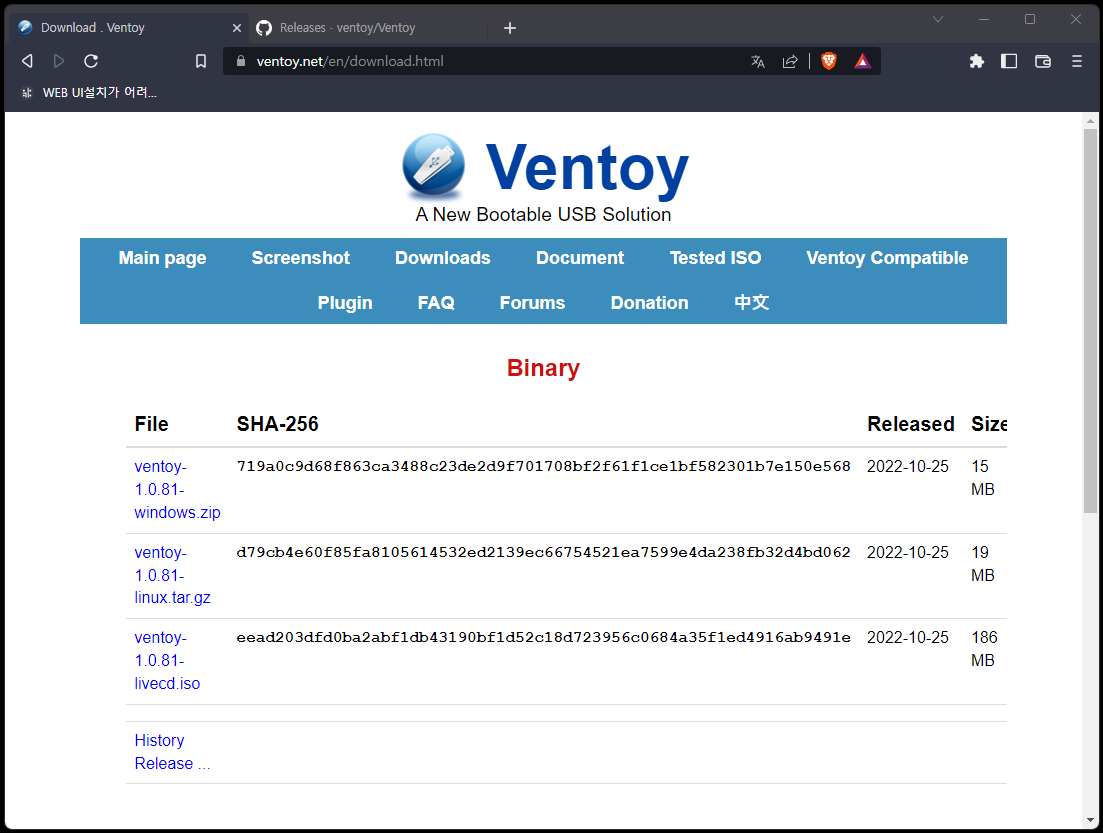 [Ventoy 부팅 USB 제작 프로그램 다운로드 바로가기]