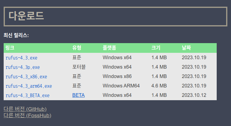[Rufus 부팅 USB 제작 프로그램 다운로드 바로가기]