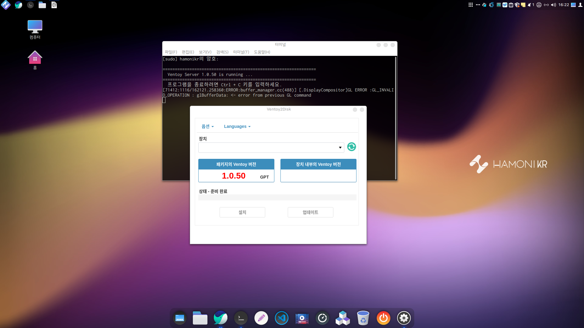 터미널 창이 하나 열려 비밀번호를 입력하면 GUI 화면이 나옵니다.