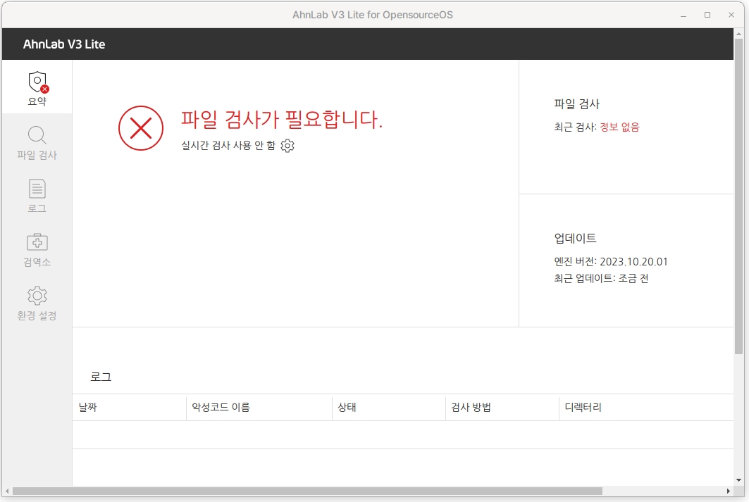 Ahnlab-v3lite 업데이트 후 실행된 화면이며, 웹버전에서 애플리케이션으로 변경된 Ahnlab-v3lite를 사용하실 수 있습니다.