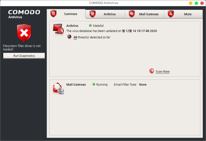 백신 프로그램은 잘 동작하지만 하지만 ClamTK의 경우 UI가 간혹 멈추는 버그가 있습니다.