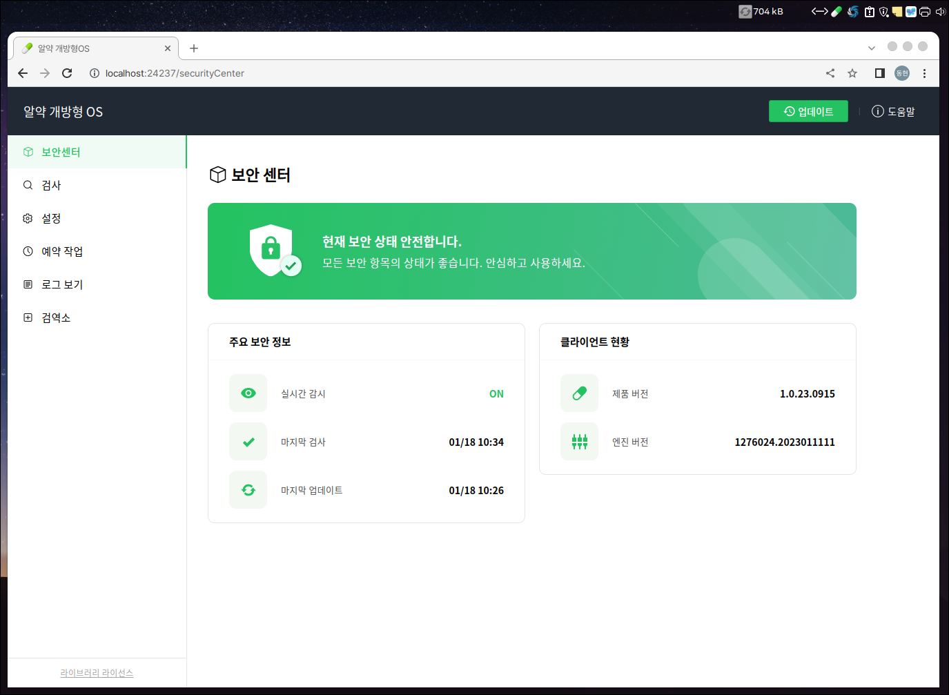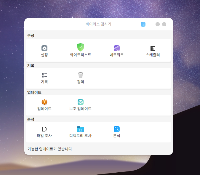 sudo apt install clamav clamav-daemon clamtk실행