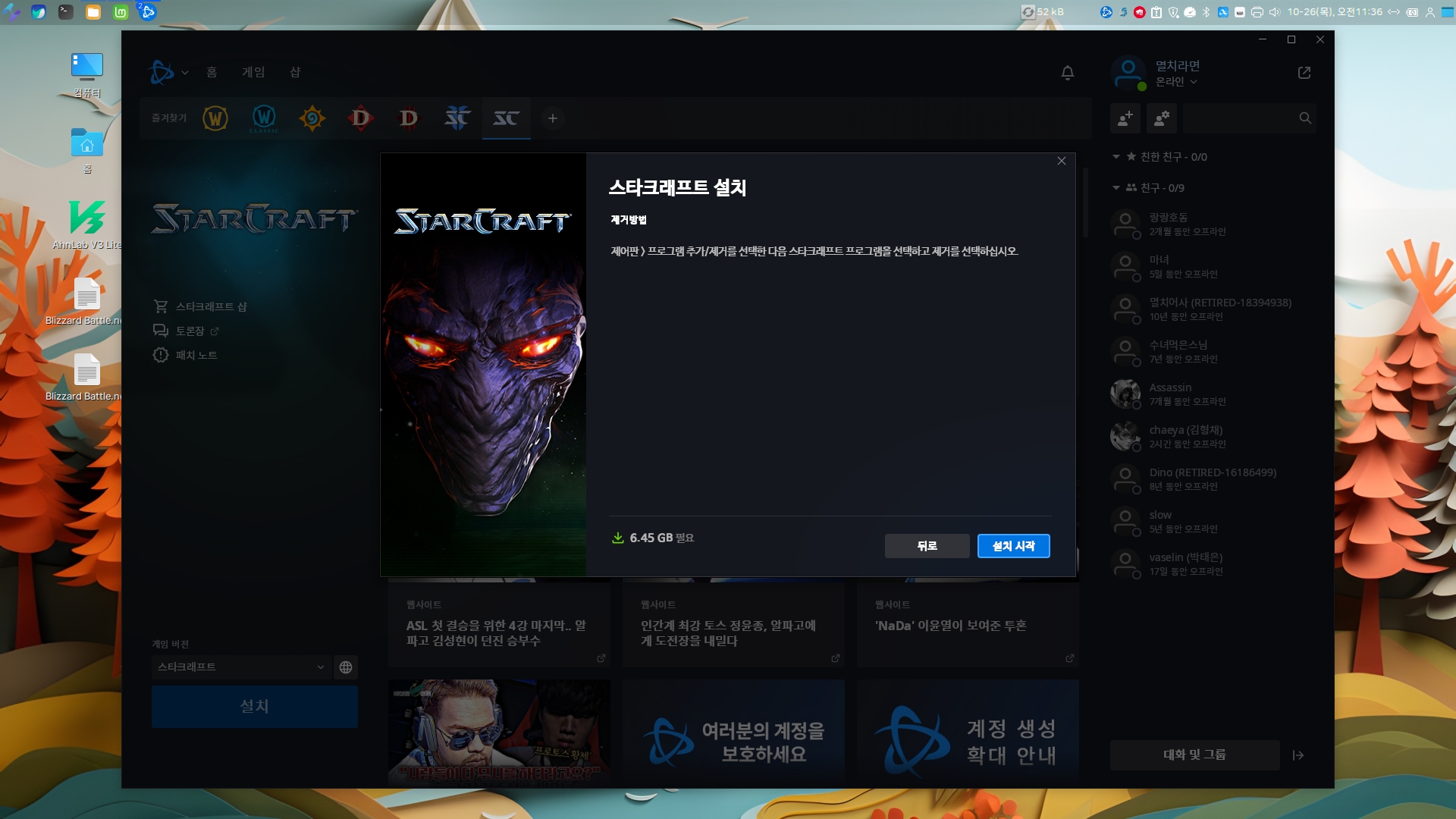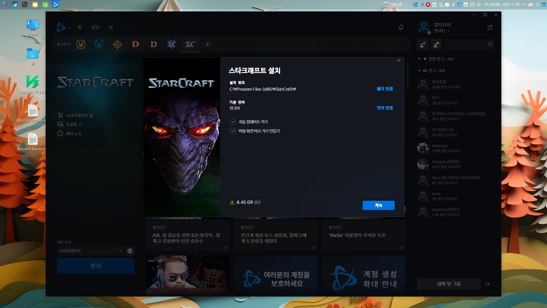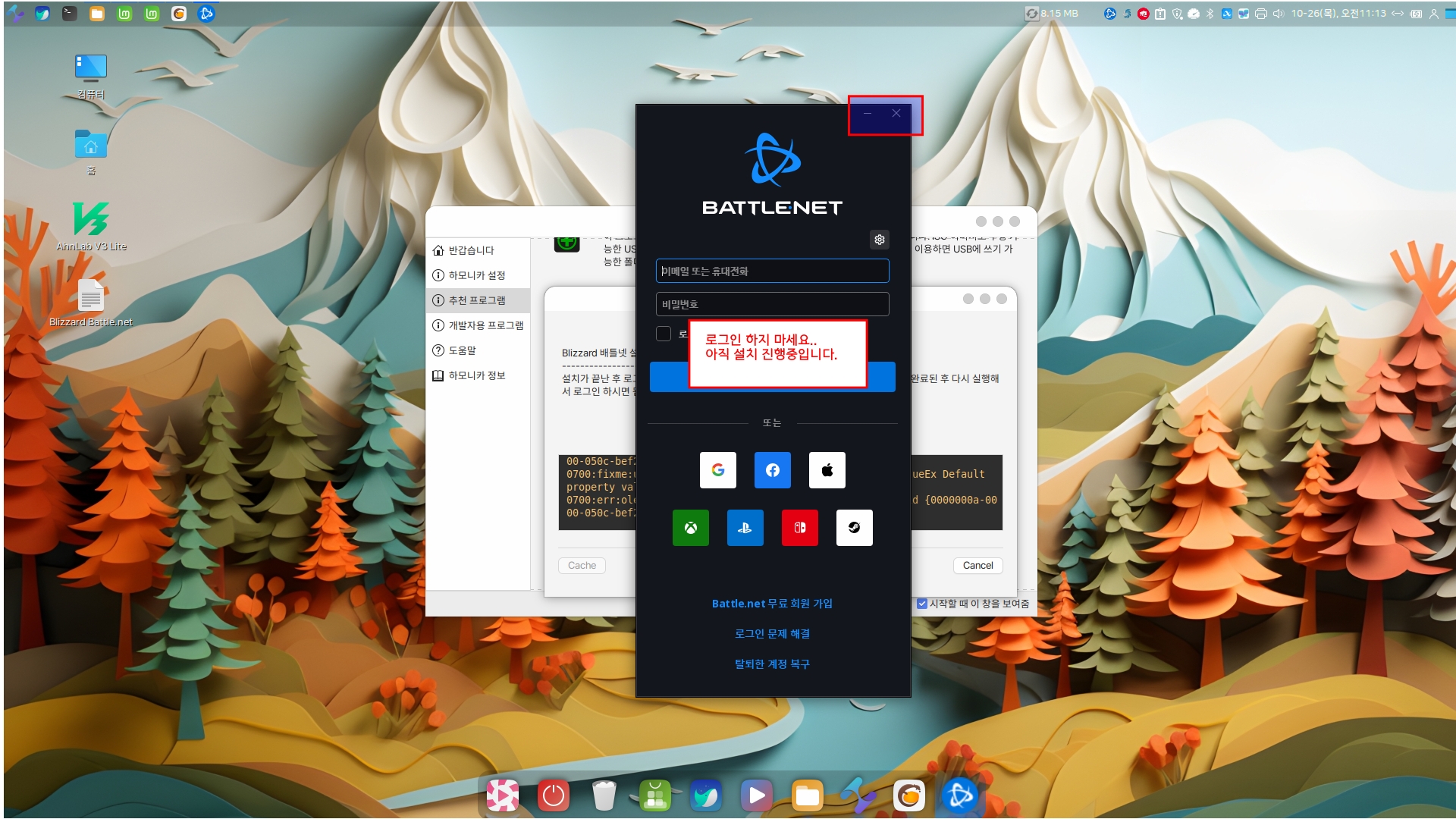 중요! 배틀넷 로그인창이 실행되는데 로그인 하지 마시고 닫아주세요.. 아직 설치가 완료된것이 아닙니다.