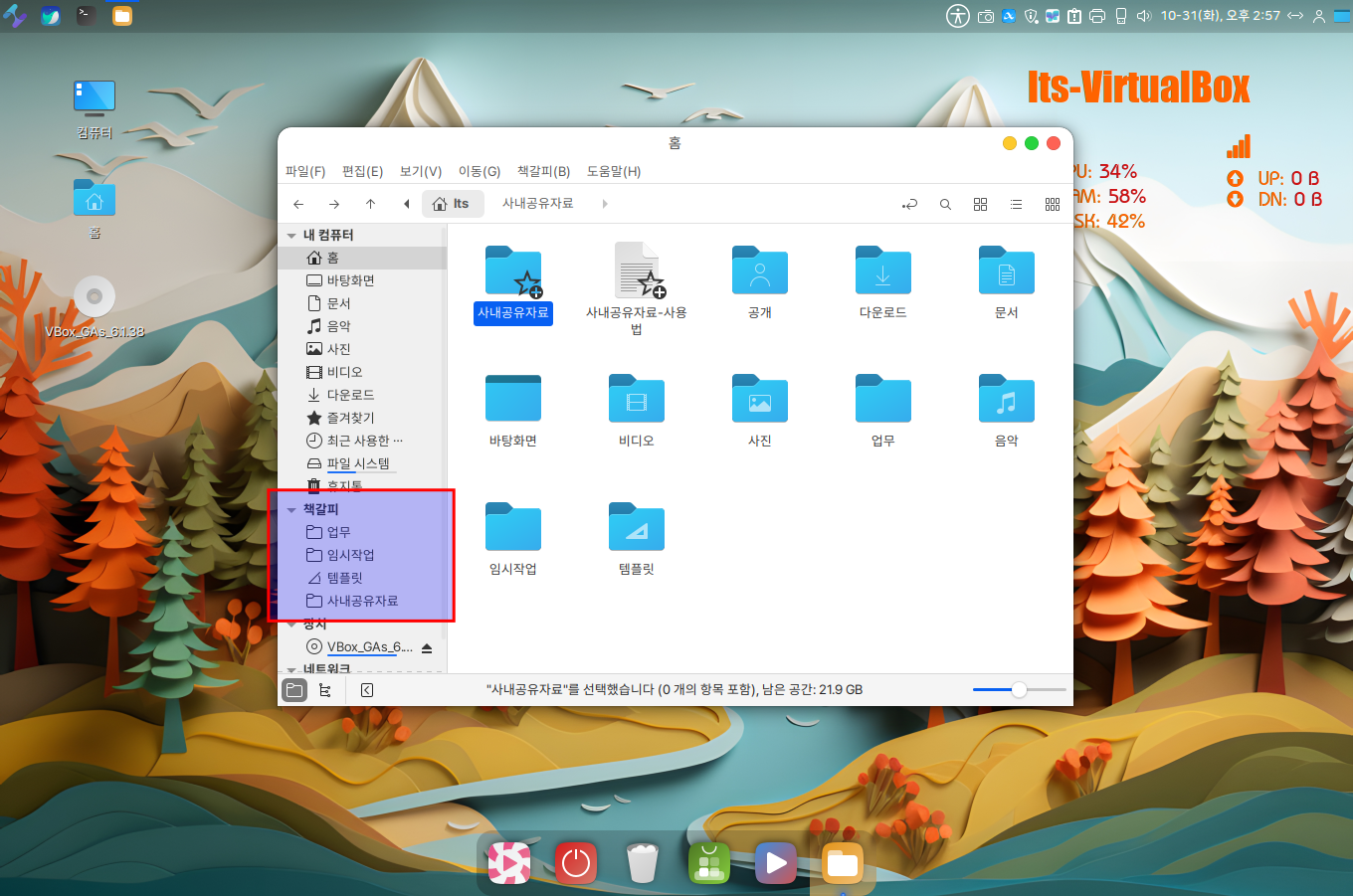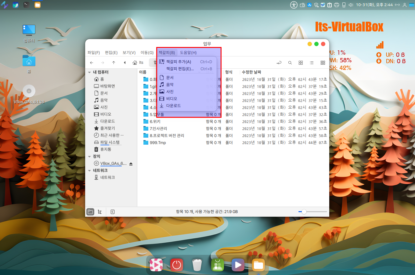 책갈피 설정이 완료되면, 좌측 패널에서 책갈피 항목아래에 추가한 폴더가 나옵니다.