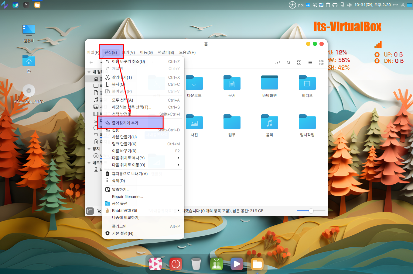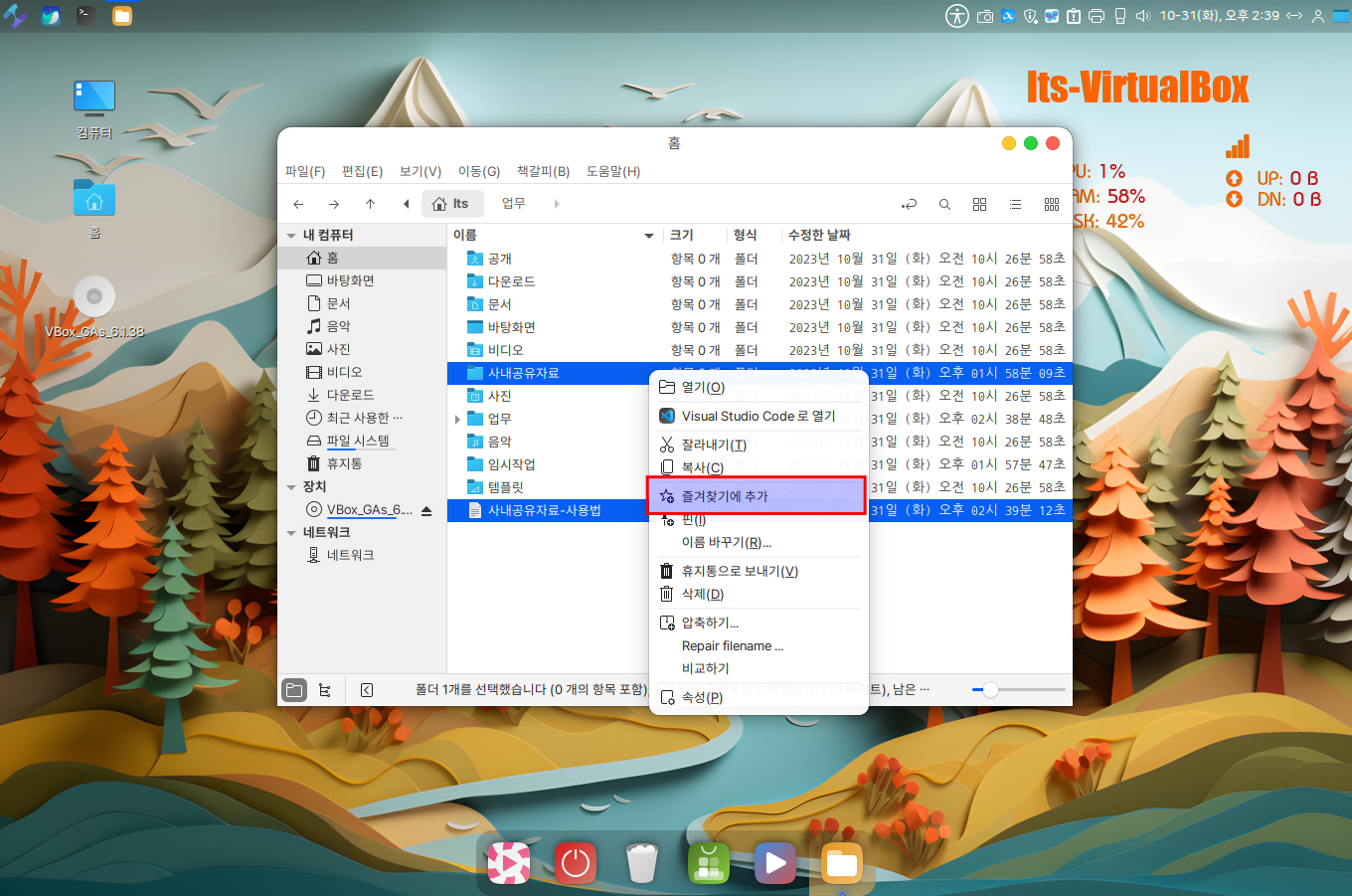 즐겨찾기할 폴더나 파일에서 마우스 우측 버튼을 클릭하고 "즐겨찾기"를 선택하세요.