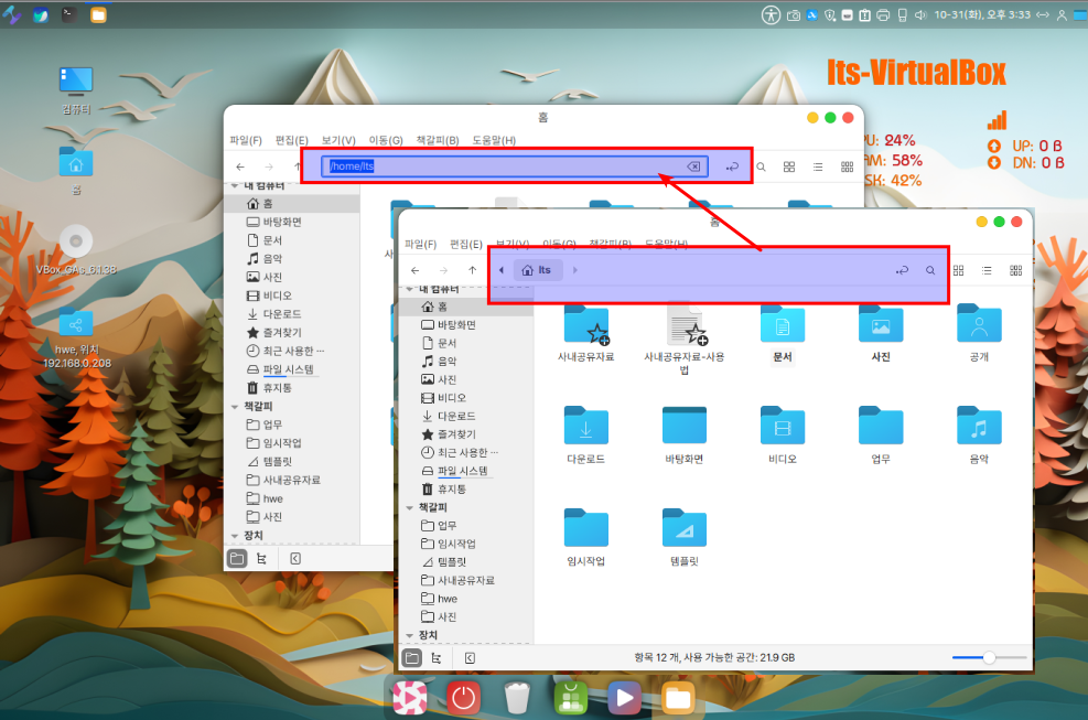 Windows에서는 원격 서버나 공유 폴더에 연결하여 이를 하나의 드라이브 문자(예: Z:)로 나타내는 기능을 제공해서 사용하고 있는데 HamoniKR OS에서도 이와 동일한 기능을 사용하실 수 있는데