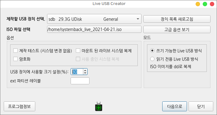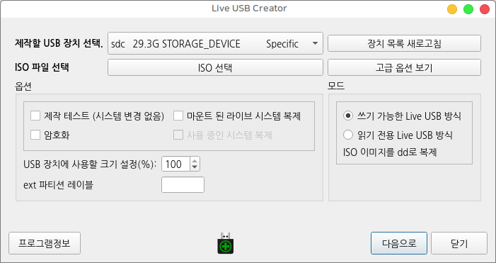 쓰기 가능한 부팅 USB 제작 Live USB Creator