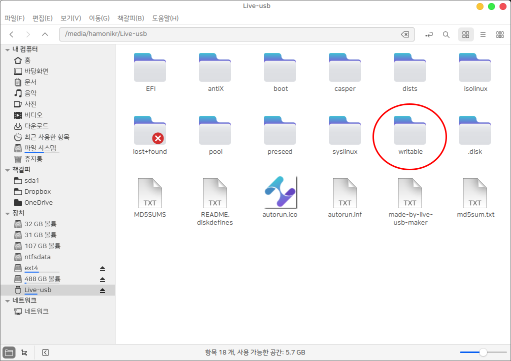 라이브 USB 부팅 후 데이터 저장