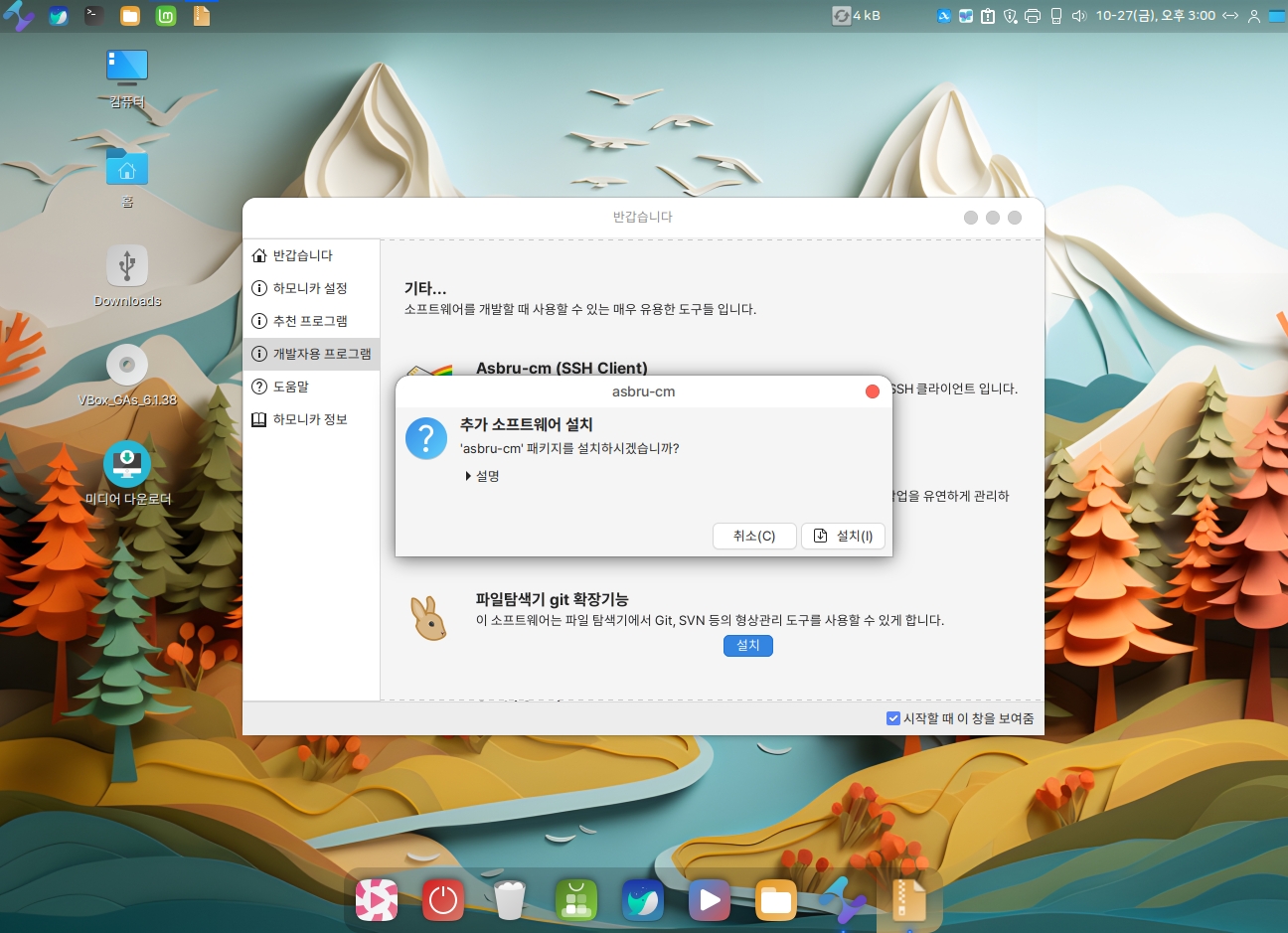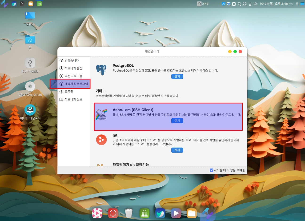 환영합니다(반갑습니다) 프로그램에서 개발자용 프로그램 > Asbru-cm( SSH Client)의 실행 버튼을 클릭하면 설치를 시작하실 수 있습니다.