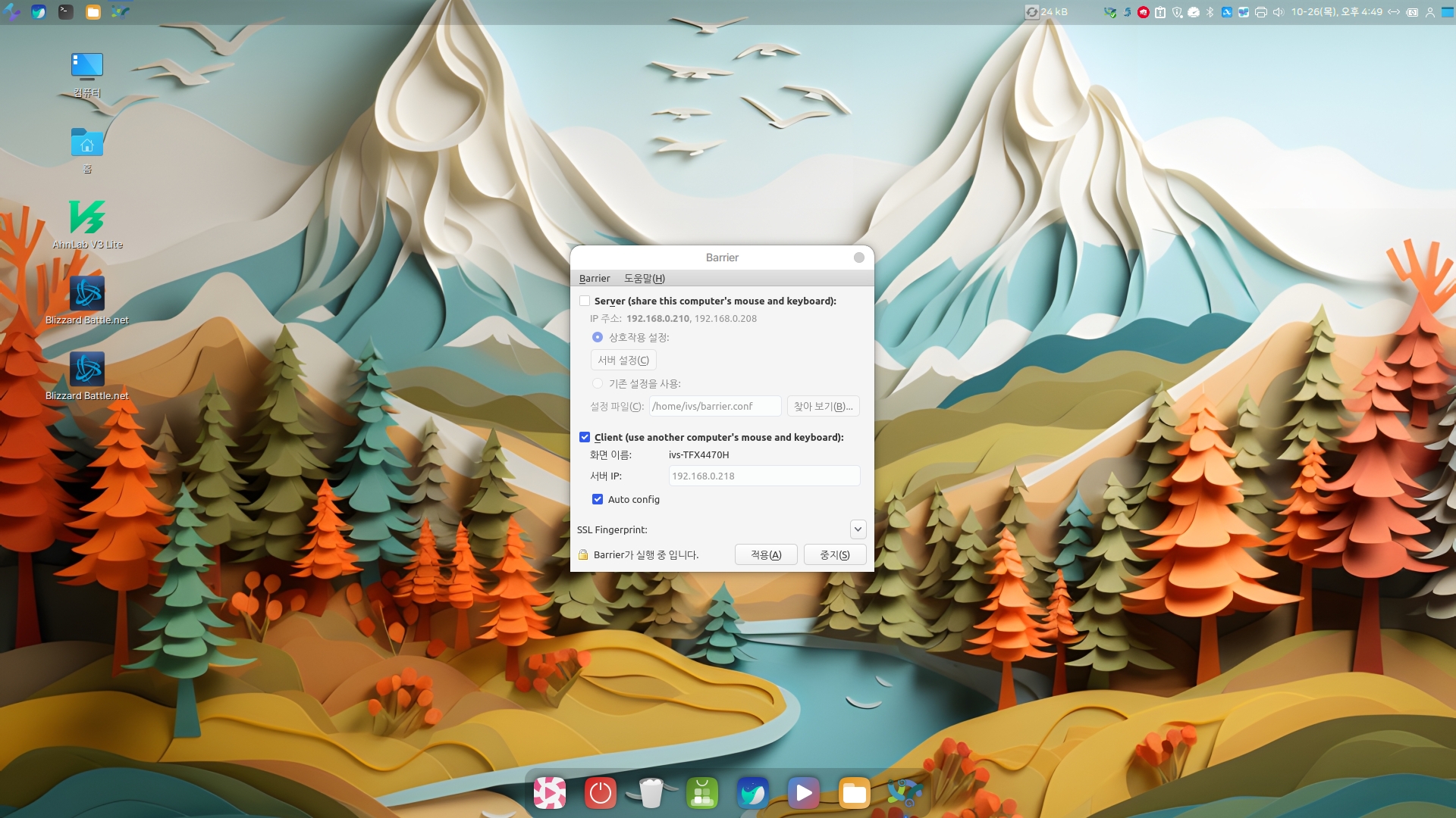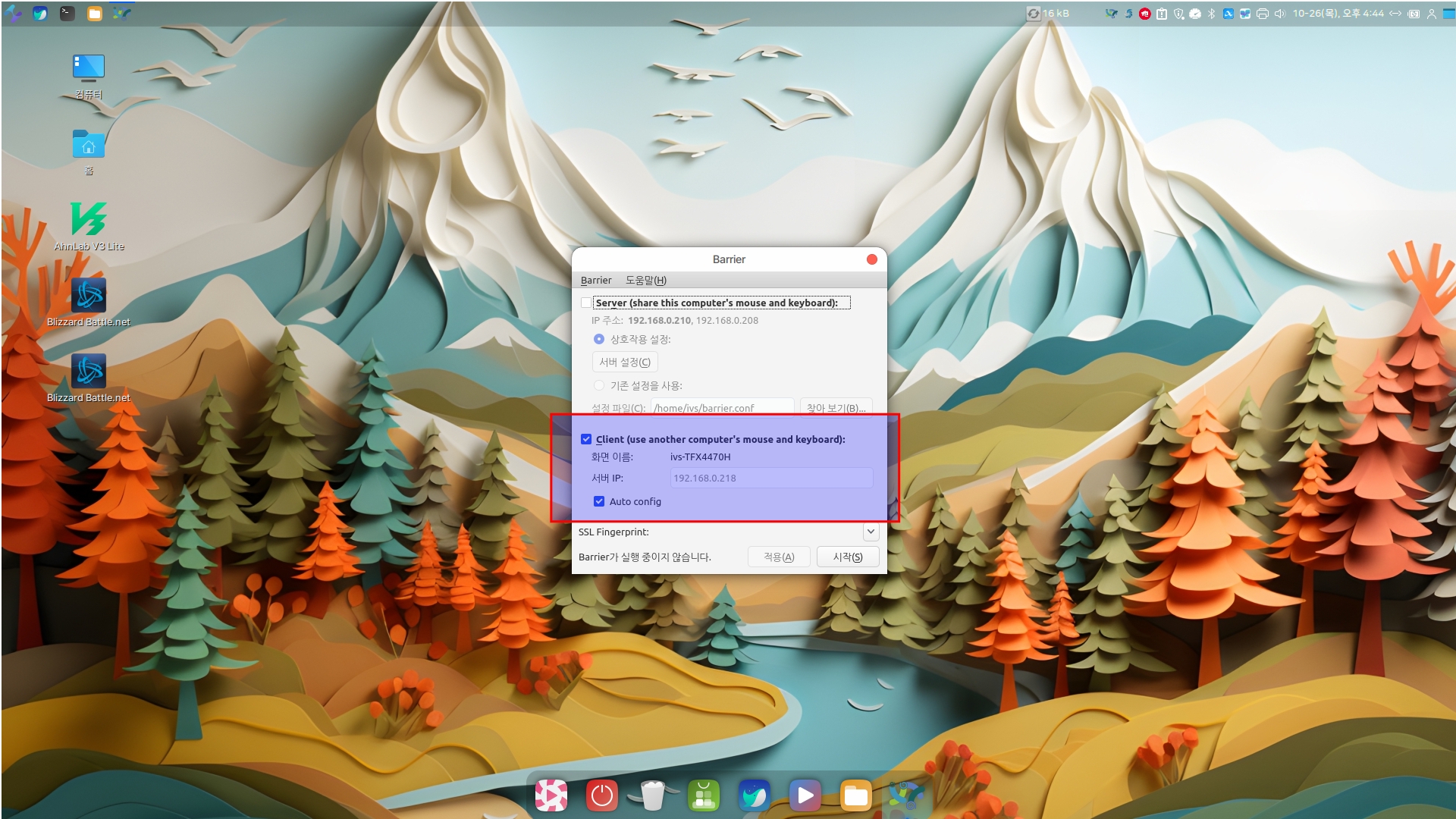 클라이언트 설정이 완료되었습니다. Barrier창을 닫아주세요... 창을 닫는다고 종료되는게 아니니 문제 없습니다.
