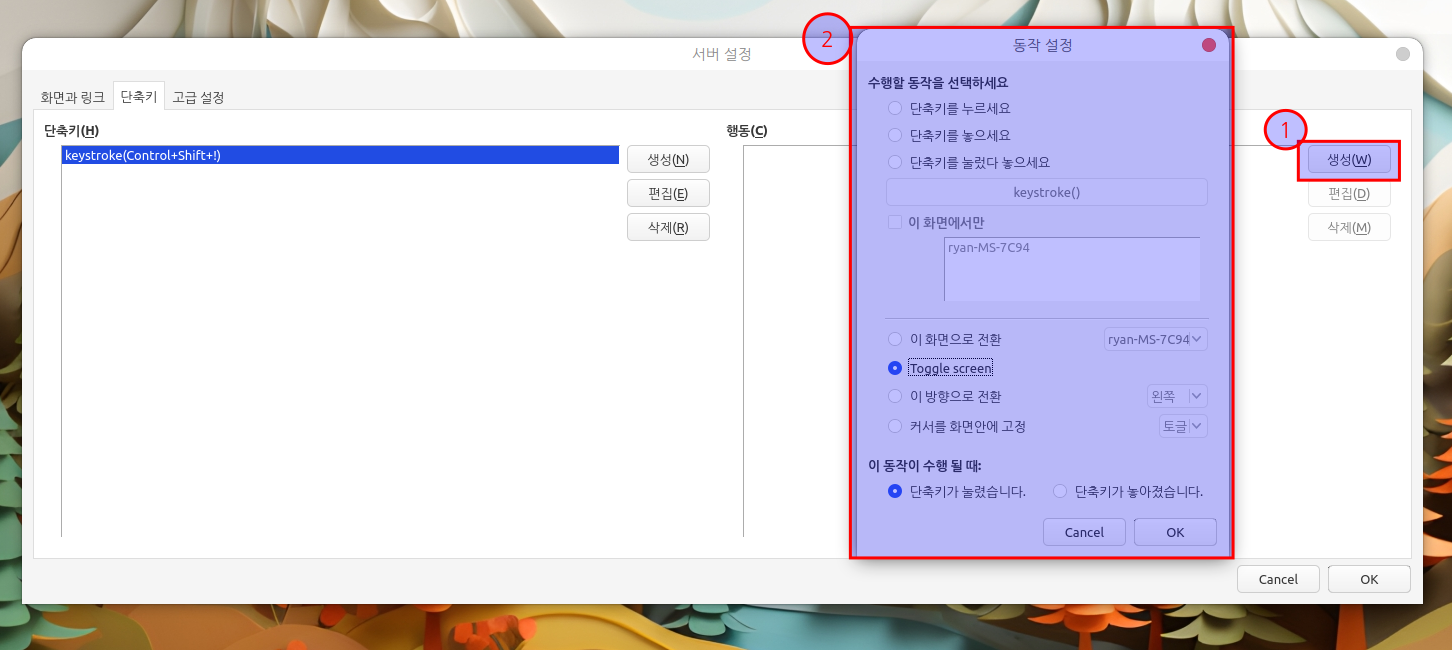 지정하신 단축키를 이용해서 하나의 키보드와 마우스로 여러개의 컴퓨터를 관리해 보세요...