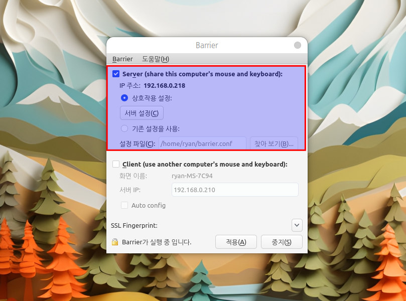 Barrier 서버 설정하기