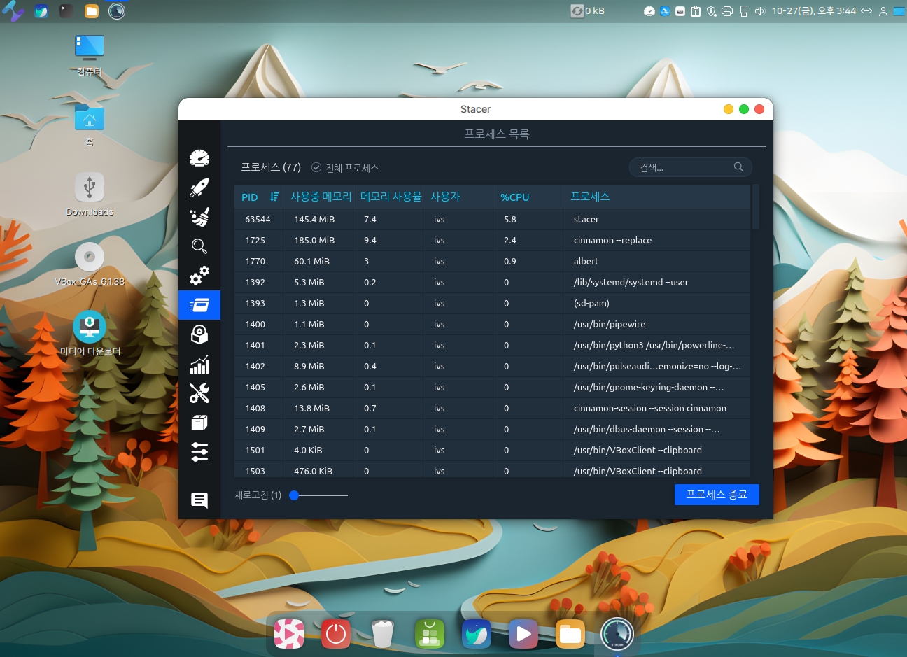 시스템 및 서비스 관리 (Stacer) 실행하기.