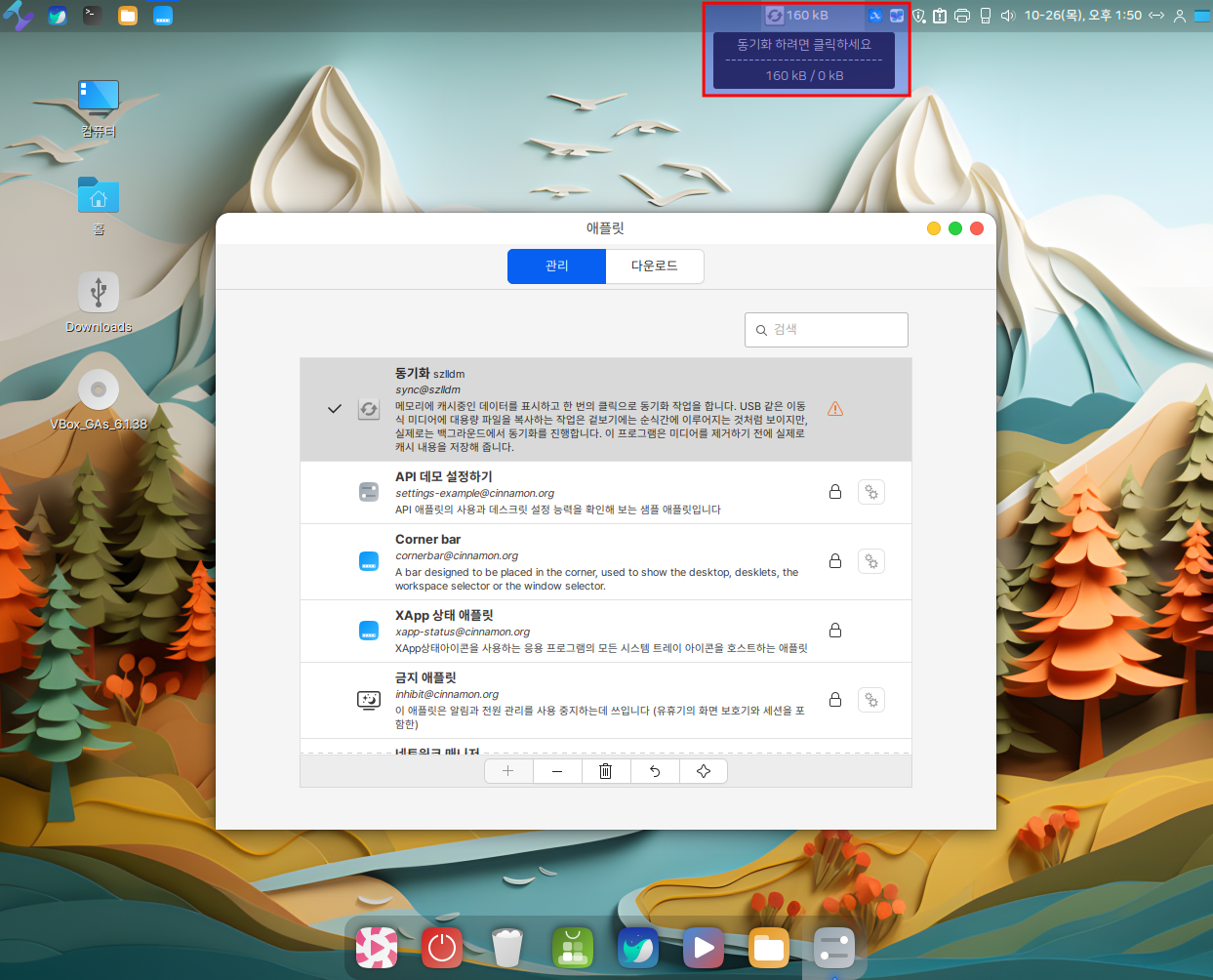 4. **시스템 업데이트 애플릿**: 새로운 소프트웨어 업데이트가 있는 경우 알림을 제공합니다.