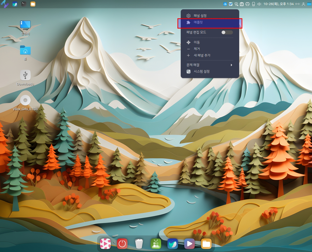 작업 표시줄에서 마우스 우측 버튼을 클릭하여 애플릿을 선택합니다.