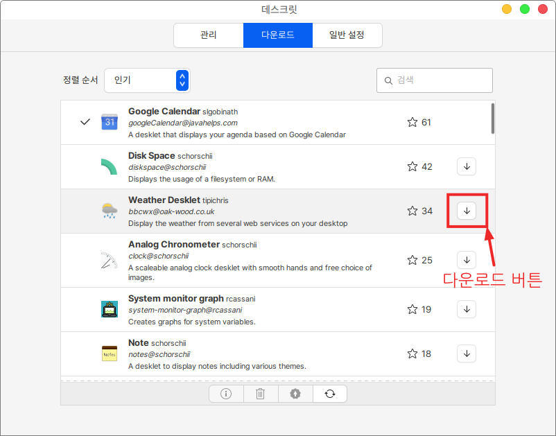 1\. 다운로드 매뉴에서 바탕화면에 추가 할 어플리케이션을 다운받습니다.