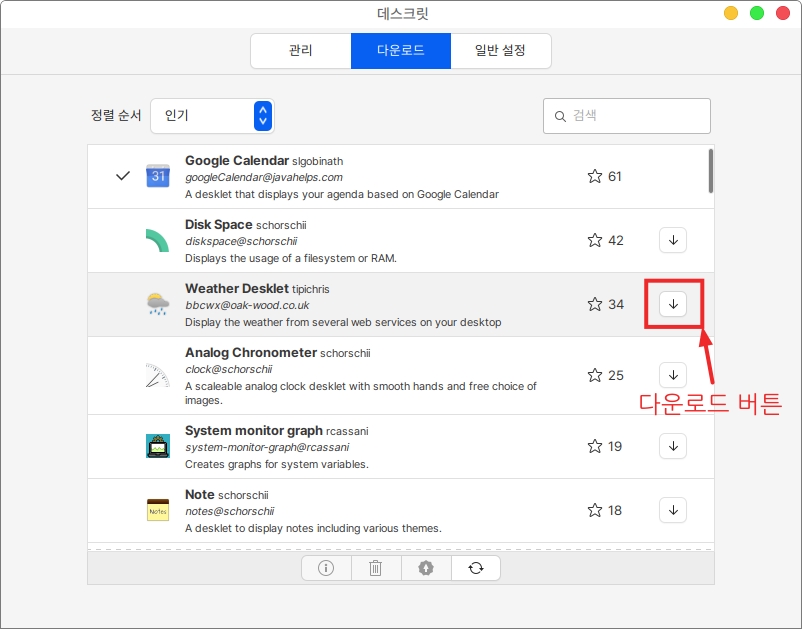 1. 다운로드 매뉴에서 바탕화면에 추가 할 어플리케이션을 다운받습니다.