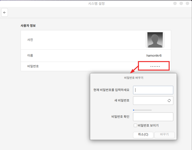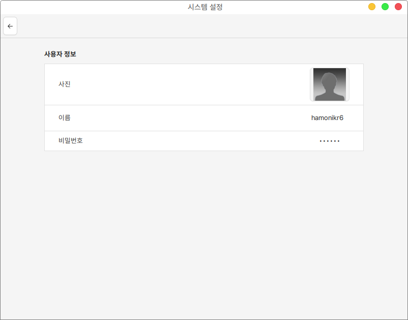 사용자 정보를 통해 사용자 사진, 이름,비밀번호를 확인하거나 변경할 수 있습니다.&#x20;