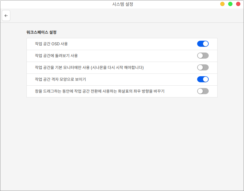 작업 공간에 관련된 설정을 할 수 있습니다.