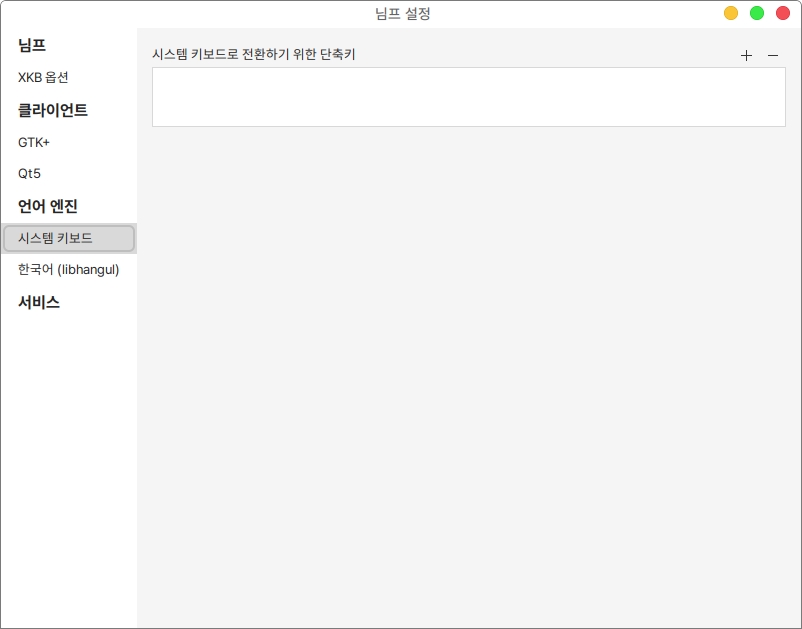 언어 엔진의 시스템 키보드 항목에서는 시스템 키보드로 전환하기 위한 단축키 설정이 가능합니다.