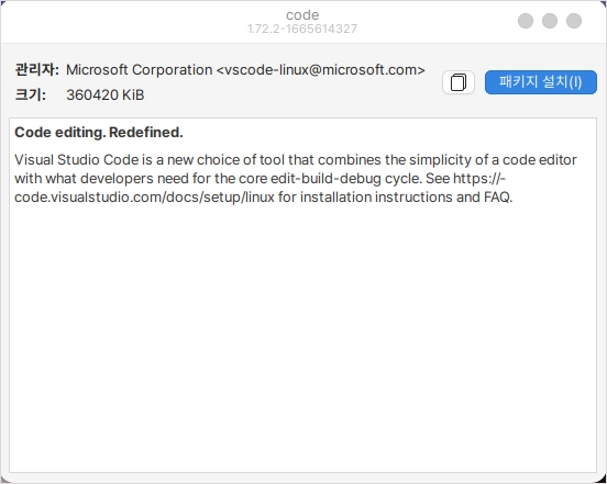 다음 링크를 클릭하여 deb 확장자로된 code 패키지를 다운로드 합니다.