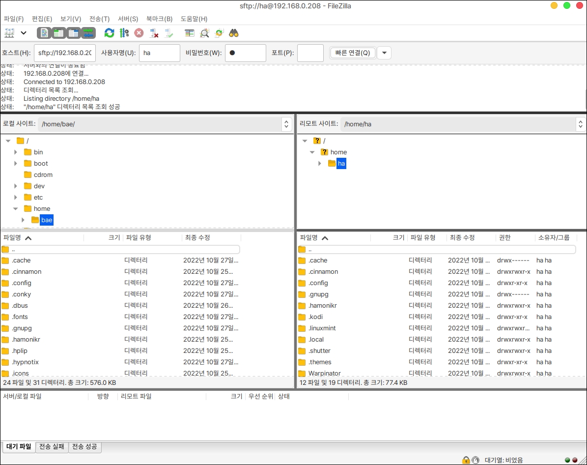 sftp로 접속할시 호스트의 아이피 주소 앞에 sftp:// 를 입력해주어야 정상적으로 접속이 됩니다.