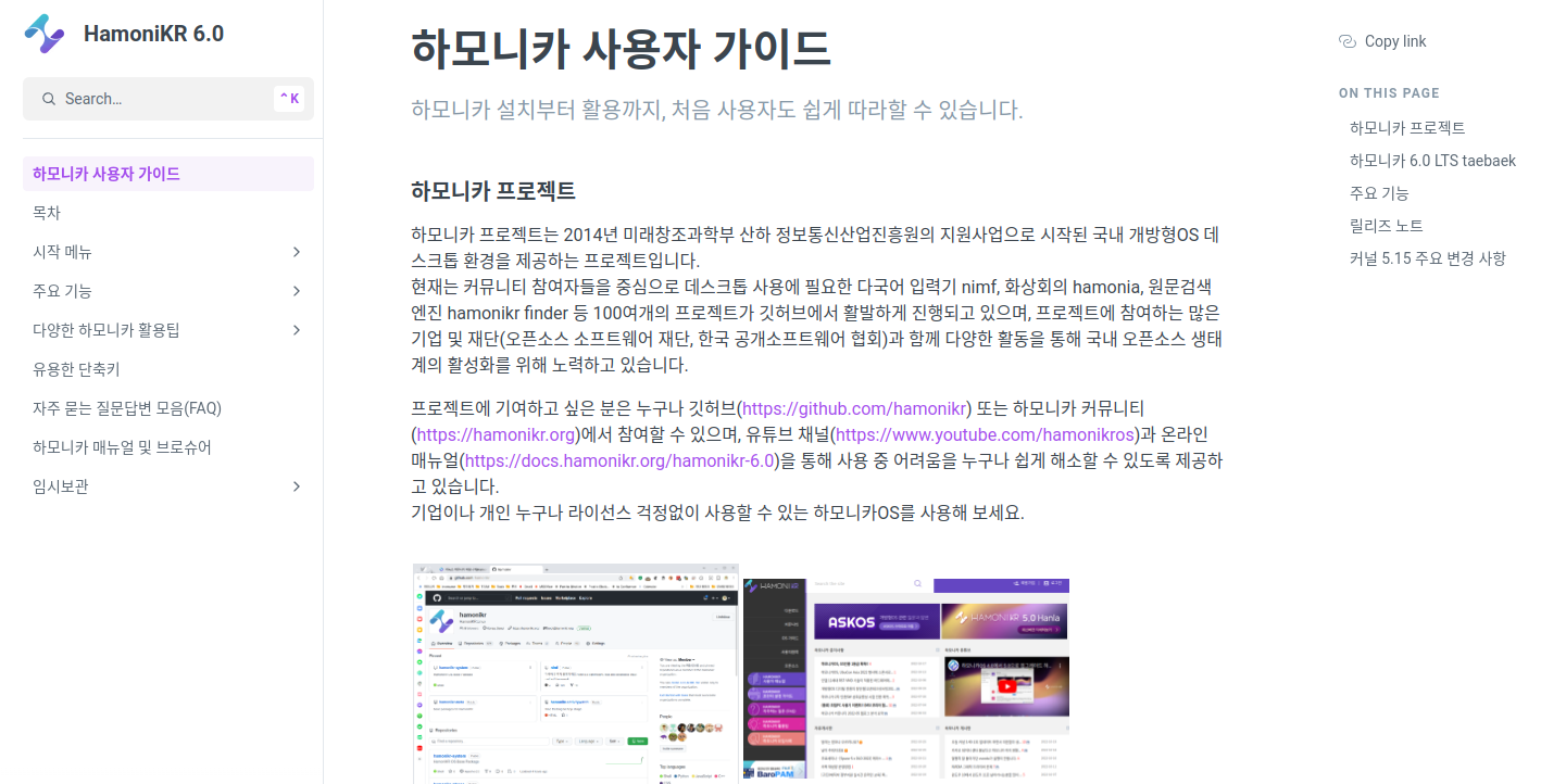 하모니카OS 사용자를 위한 도움말을 제공합니다. 하모니카OS에서 제공되는 애플리케이션과 활용 방법, 유용한 단축키, 자주 묻는 질문과 답변 등의 정보를 제공합니다.&#x20;