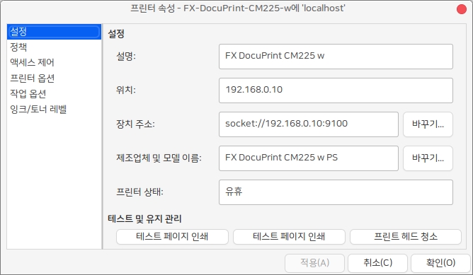 설정을 마친 프린터를 다음과 같이 다양한 옵션을 설정할 수 있습니다. (하드웨어 제조사의 드라이버 제공에 따라 다름)