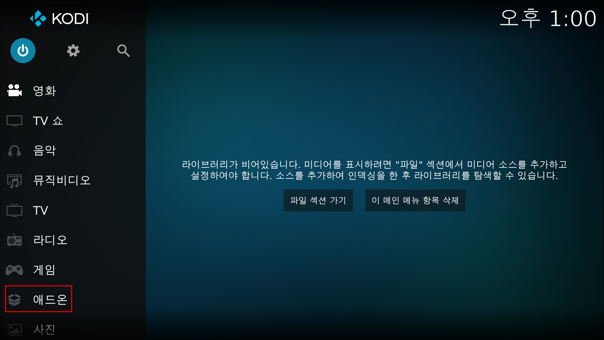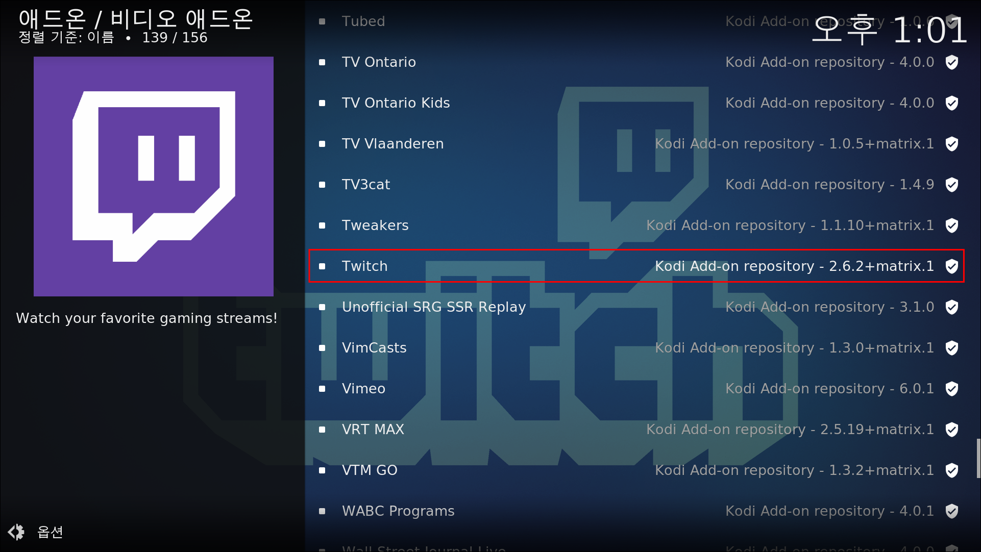 애드온 기능으로 일반 TV 방송, 라디오, 콘솔게임, 트위치, 유튜브 방송, 영화 등을 추가하여 볼 수 있습니다.