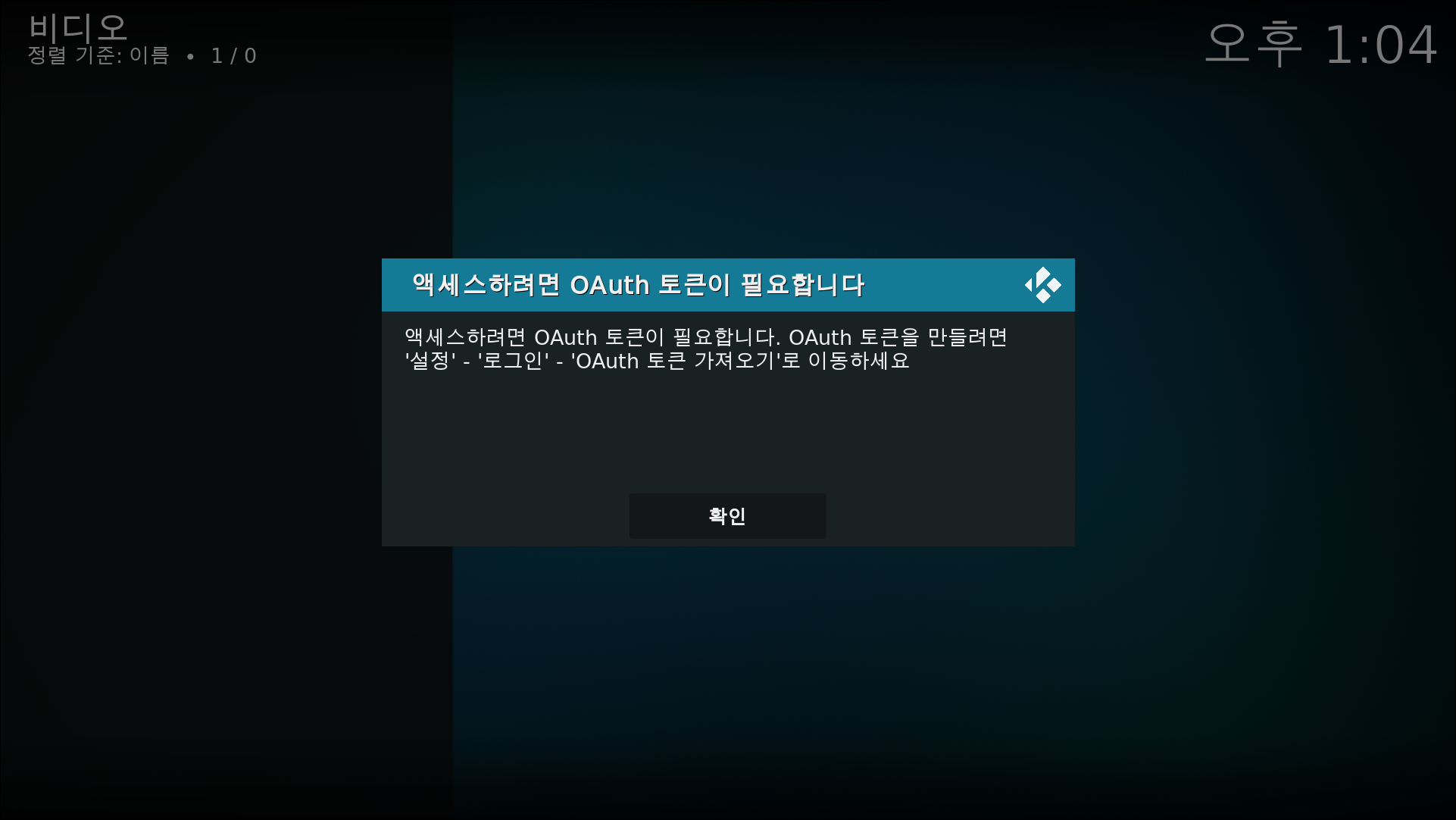 OAuth 토큰이 필요하다는 메세지가 나옵니다.