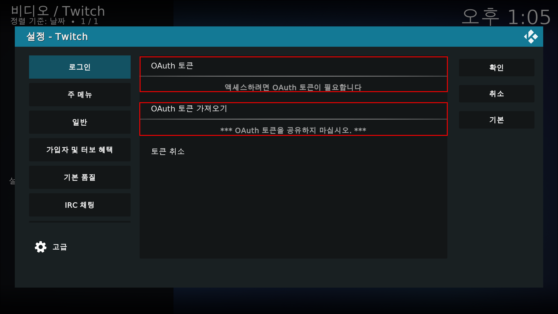 코디에서 트위치를 시청하려면 자신의 계정에 로그인이 필요하고 애드온의 로그인 방식은 OAuth 토큰을 사용해서 로그인하기 때문입니다.