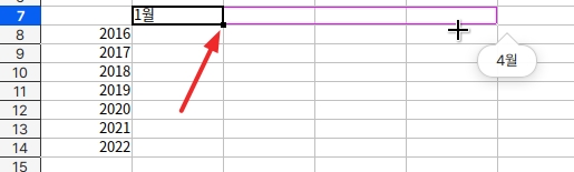 칼크에서는 자동 채우기를 사용하여 데이터 입력을 간소화할 수 있습니다.