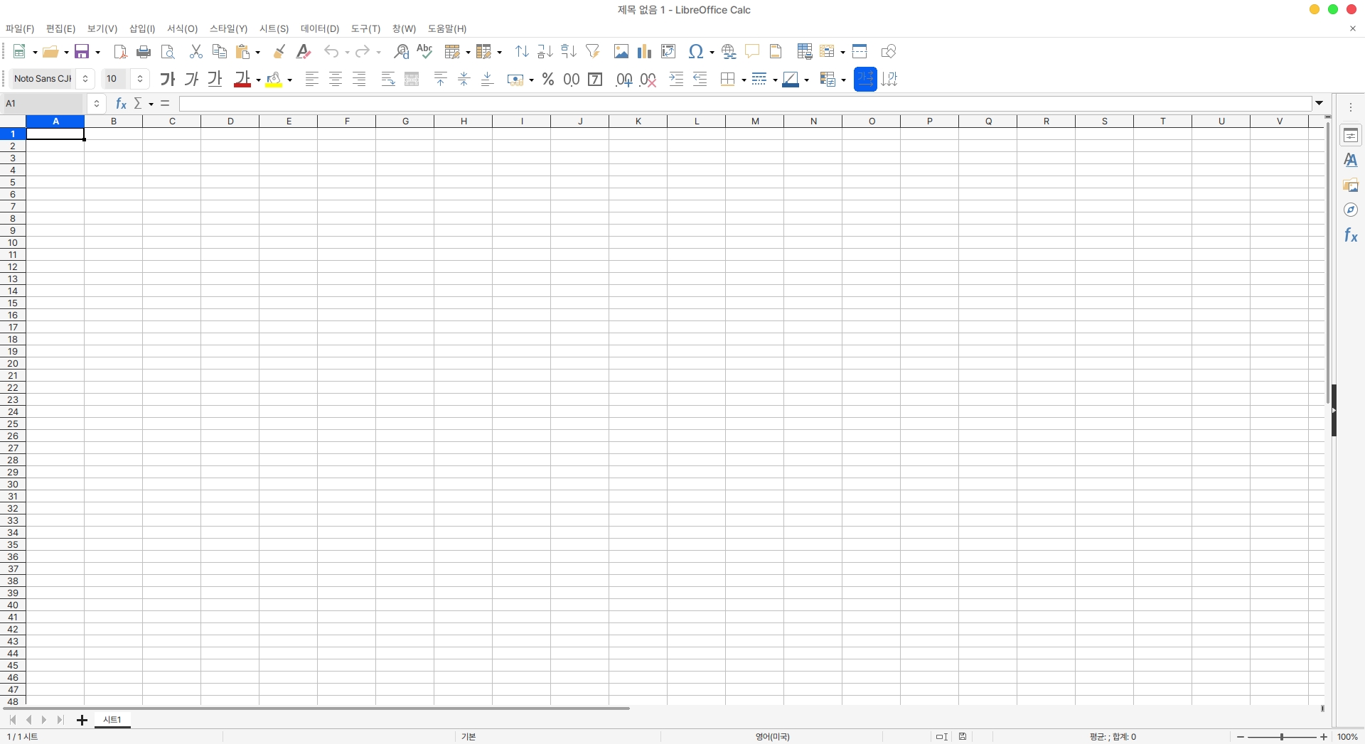 A1과 같이 빈 셀을 선택하고 텍스트나 숫자를 입력합니다.
